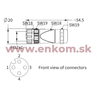 Skrutkovací priamy konektor M12.