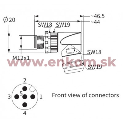 Názov produktu: M12 A-code, 5-pole male, angled