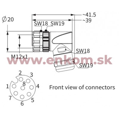 Názov produktu: M12 A-code, 8-pole female, angled