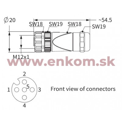 Názov produktu: M12 A-code, 5-pole female, straight, shielded