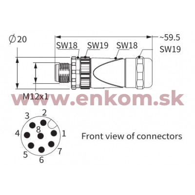 Názov produktu: M12 A-code, 8-pole male, straight