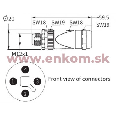 Názov produktu: M12 T-code, 4-pole male, straight, Power