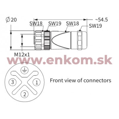 Skrutkovací kovový konektor M12.