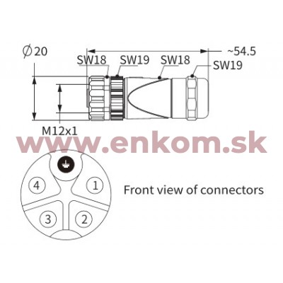 Názov produktu: M12 K-code, 5(4+PE) female, straight, Power